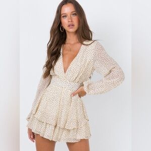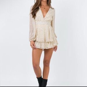 Princess Polly STRING OF LOVE ROMPER BEIGE | Spring Summer| Long Sleeve | Size 4