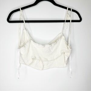This chic camisole from Princess Polly features a cream hue with a stylish buttoned front and a trendy tie detail. The cropped design and camisole sleeves make it perfect for a casual, summery look.