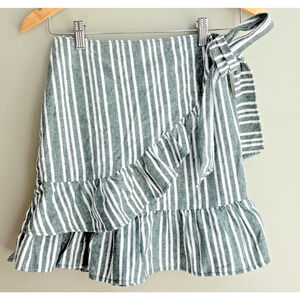 Princess Polly Size 4 Striped Wrap Ruffle Mini Skirt | Green White Zip Feminine