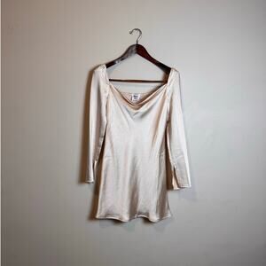 Princess Polly, Feminine, going out, minimalist, long-sleeve, cowlneck, champagne, formal, star power dress, mini dress, champagne dress, satin dress, party dress, cocktail dress, holiday dress, night out outfit, sleeveless mini, formal dress, semi formal dress, trendy dress, going out dress