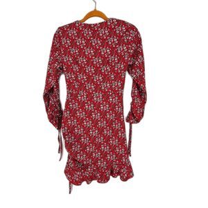 Princess Polly Surplice Neck Ruched Side Mini Dress Red Size 2