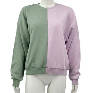 Princess Polly Sweatshirt Womens 4 Colorblock Sage Green Lilac Purple Crew Neck