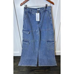 Princess Polly Tamba Denim Cargo Jeans Skater High Waist Wide Leg Size 6 NWT