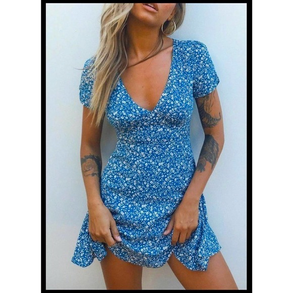 Princess Polly The Sting Short Mini Dress Blue Floral US Size 4