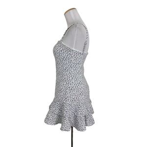 Princess Polly Tiered Ruffle Mini Dress Square Neck Spaghetti Strap Blue White