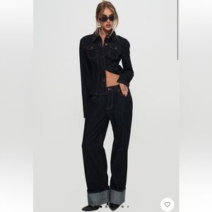 Princess Polly Top Model Cuffed Jean Dark Denim