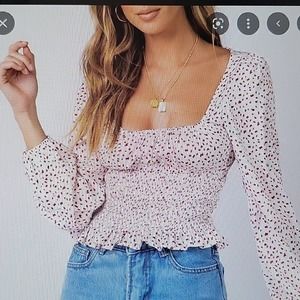 Princess Polly Top Smocked Long Sleeve Crop Balloon Sleeve Spring Sz 4