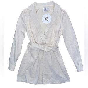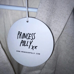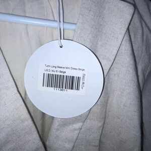 Princess Polly Turin Long Sleeve Belted Mini Dress Beige Size 2 Preppy Office