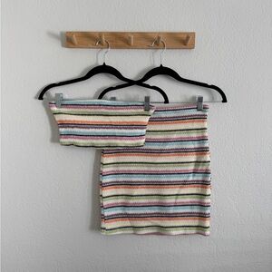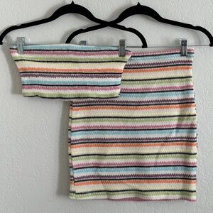 Princess Polly matching knit top + skirt with vibrant stripes.
