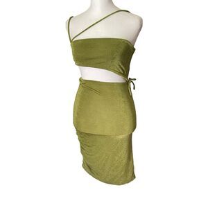 Princess Polly US 0 Cutout Bodycon Dress Green Ruched Strappy Fitted Club