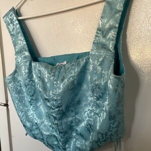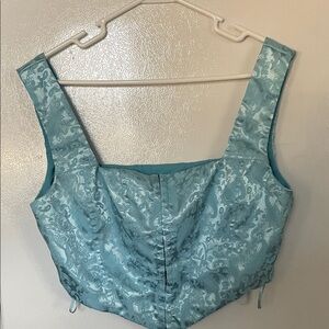 Princess Polly US 12 Elegant Blue Brocade Crop Top