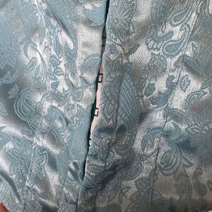 Chic light blue brocade top. Features elegant patterns. Ideal for special events.