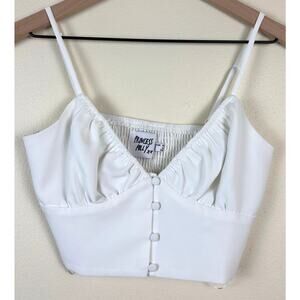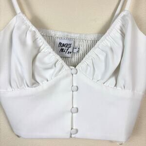 Princess Polly Velma Button Up Cropped Top Size 4 in White