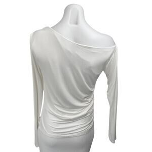 Princess Polly White Long Sleeve One Shoulder Drape Ruched Blouse Top Size 10