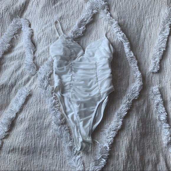 Princess Polly White Ruched Mesh Bodysuit
