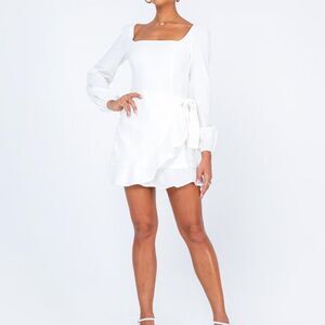 Princess Polly White The Villa Long Sleeve Ruffle Mini Faux Wrap Dress size 6