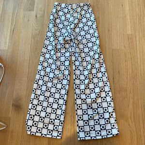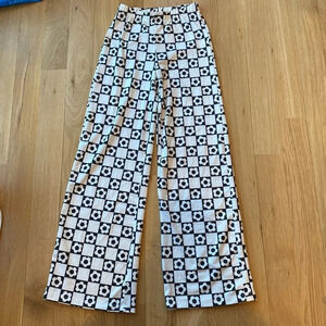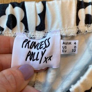 Princess Polly Wide Leg Pants Black White Daisy Print Size 0