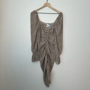 Princess Polly Women Brown Leopard Mini Dress Longsleeve Ruffle Cocktail Size 8