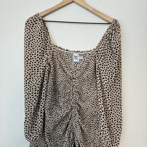 going out, date night, girly, romantic, animal, brown, beige, neutrals, vegas, clubbing, spotted, unlined, special occasion, longsleeve, puff sleeve, curve hugging