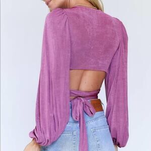 Princess Polly Women's Adi Long Sleeve Wrap Around Top Purple Size 2 NWT