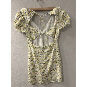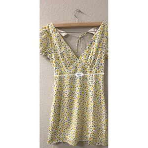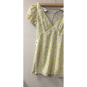 Princess Polly Womens Kasey Mini Dress Size US 6 AU 10 Yellow Lemons Print NWT. Condition is New with tags. Shipped with USPS Ground Advantage.