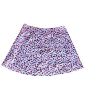 This Princess Polly mini skirt features a vibrant blue leopard print with red accents. Ideal for casual outings or dressed-up events.