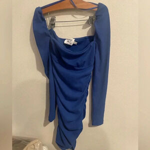 Princess Polly Women's Portia Mini Dress Royal Blue Size 4 Ruched Long Sleeve