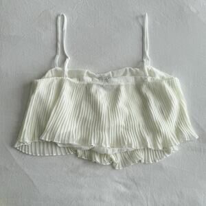 Princess Polly Womens White Pleated Crop Top Flowy Spaghetti Strap Size 6 Blouse