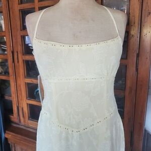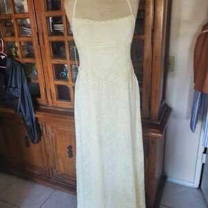 Elegant yellow maxi dress with delicate lace. Perfect for special occasions.