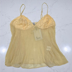 Princess Polly Yellow Lace Pleated Cami Top | Sheer Babydoll Tank Blouse US 10