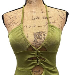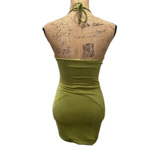 Princess Polly Zamia Cutout Halter Bodycon Mini Dress Metallic Green US Size 6