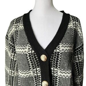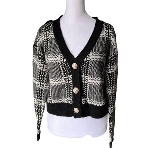 Beautiful Princess Polly black and white, checkered plaid cropped button up sweater.