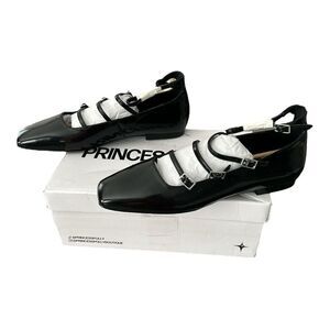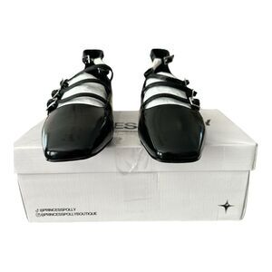 Women’s Princess Polly Black Patent Flats, Size 11. Brand new, in original box with protective tissue - no blemishes or damage to the shoes. Features a sleek patent finish and stylish multi-strap design. The box may show slight wear, but the shoes are in new condition. All photos are of the actual item. A chic addition to any wardrobe!