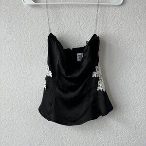 Princess Polly black satin tube top with white lace appliqué🕊️🍸🖤☁️