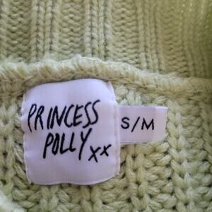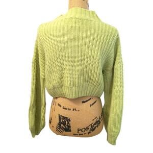 Princess Polly lime cropped sweater, size S/M, cable knit, high mock collar