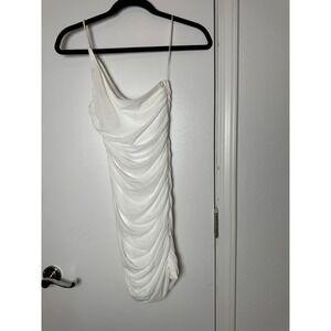 Princess Polly, one shoulder rouched white dress, size 2. Side zipper. Has stretch. Worn once, in great condition.