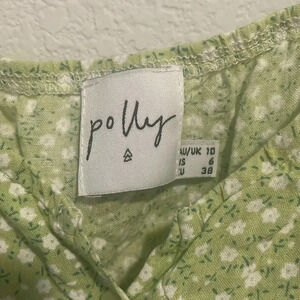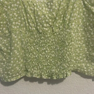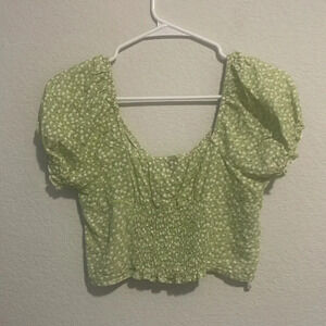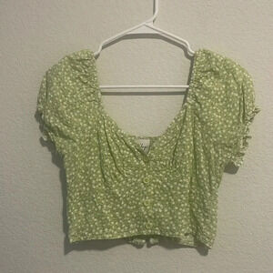 Princess Polly size 6 crop top. Short puff sleeves. Button up. Green with white flower print.