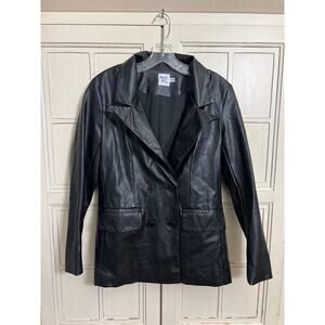 Princess Polly size XS/S black faux leather blazer jacket in excellent condition. No signs of wear. Measures 19” from armpit to armpit and 26” long.