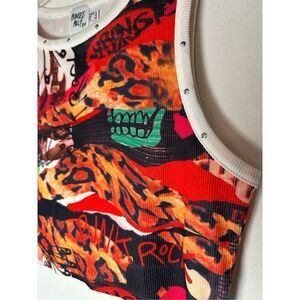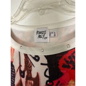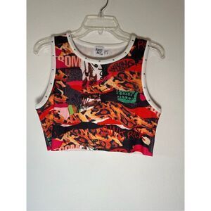 Princess Polly women’s cropped multi-colored graphic print tank top, size 10
