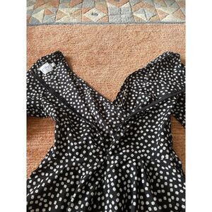 Princess Polly Black with White Floral Long Sleeve Mini Faux Wrap Dress Size 4