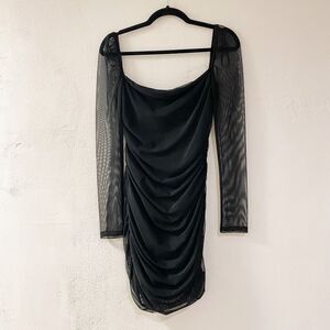 Princess Polly Charvi Sheer Long Sleeve Ruched Minidress in Black Size 8