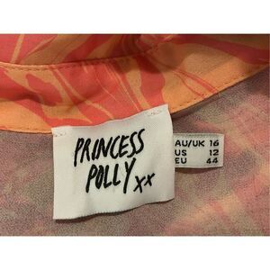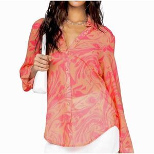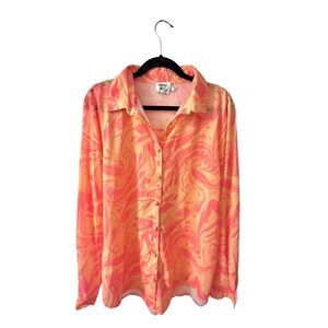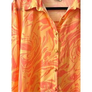 Princess Polly Button Down Blouse in psychedelic orange and pink swirl. Wear as a sheer top or a flowy cover up. Women’s size large / 10.