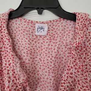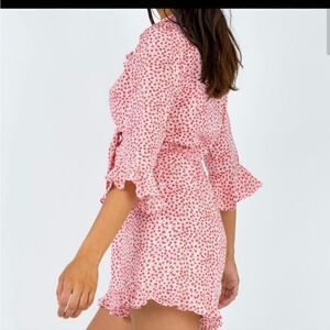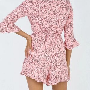 Princess polly aroa playsuit romper size 8. Pretty floral red pattern. 100% rayon. Bottom lined. Ties at the chest and zips on the back. Ruffled accents.