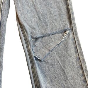 Keywords: trendy, iconic, cotton, ripped, tik tok famous, viral, ripped, frayed, distressed, straight leg, 90s, slouchy, light, cut, denim, high rise, high waist