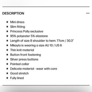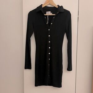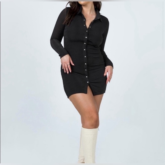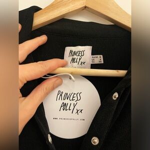 Princess Poly elody long sleeve mini dress in black with silver snap buttons NWT