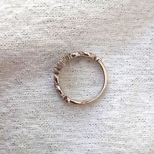 Shaped like a tiara this dainty ring features swirl design w/ faux diamonds & a single row below