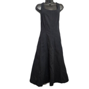 Princess Seamed Black Midi Dress Fitted Sz 14 Pockets Aged Black Goth Trad