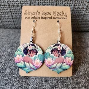 Beautiful Tiana surrounded by water lilies in these lovely handmade portrait earrings. Lightweight and comfortable for all day wear, perfect for a trip to the parks! Hypoallergenic sterling silver plated hardware.