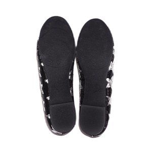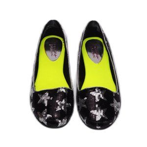 Features: Metallic Black and Silver Star Sequin, Soft Padded Inner Soles, Rubberized Bottom Treads.
