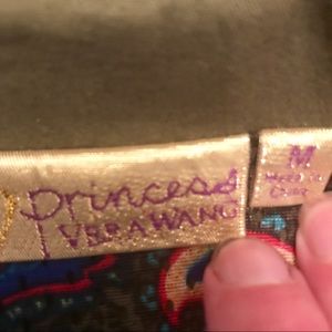 Military like Olive Blazer in EUC! is a Princess Vera Wang Shrug Spring jacket Large green and super cute. This light jacket has a very unique interior patter with an olive green exterior (no buttons) with with paisley lining. Lace bottom hem with ruched sleeves. 2 pocket front with a sheer pattern at the bottom. Grab this fast. This is a pre-owned junior jacket and it is in great condition!